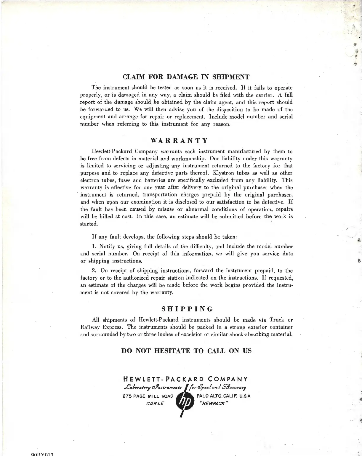 All shipments of Hewlett-Packard instruments should be