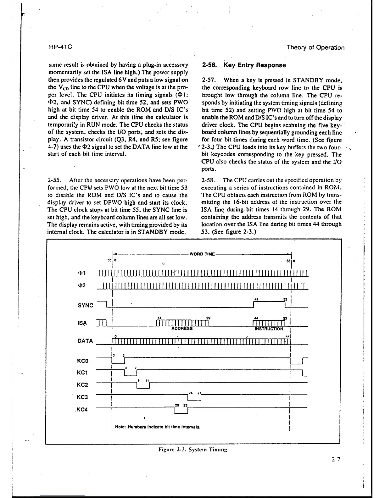 HP 41C - Key Entry Response; System Timing