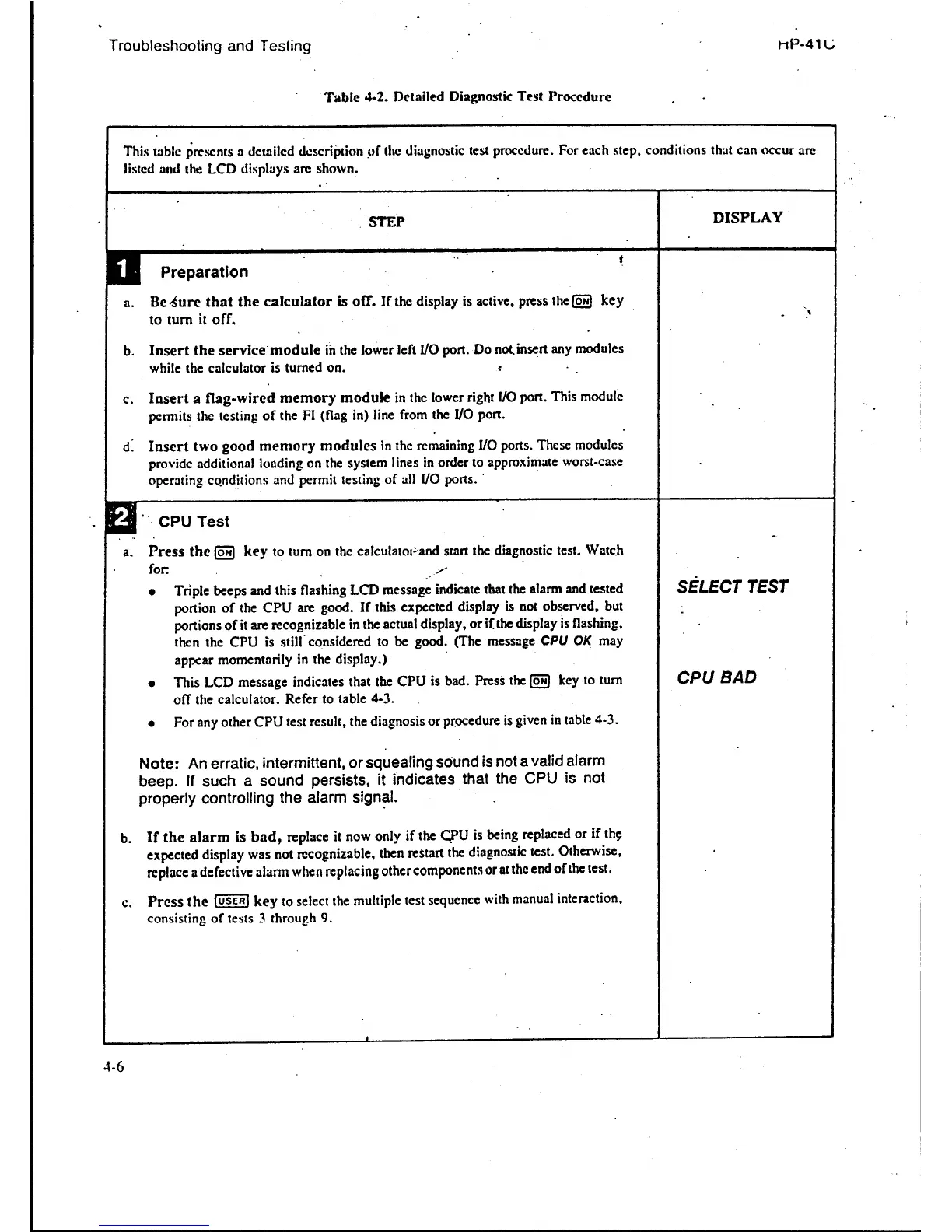 HP 41C - Detailed Diagnostic Test Procedure; CPU Test