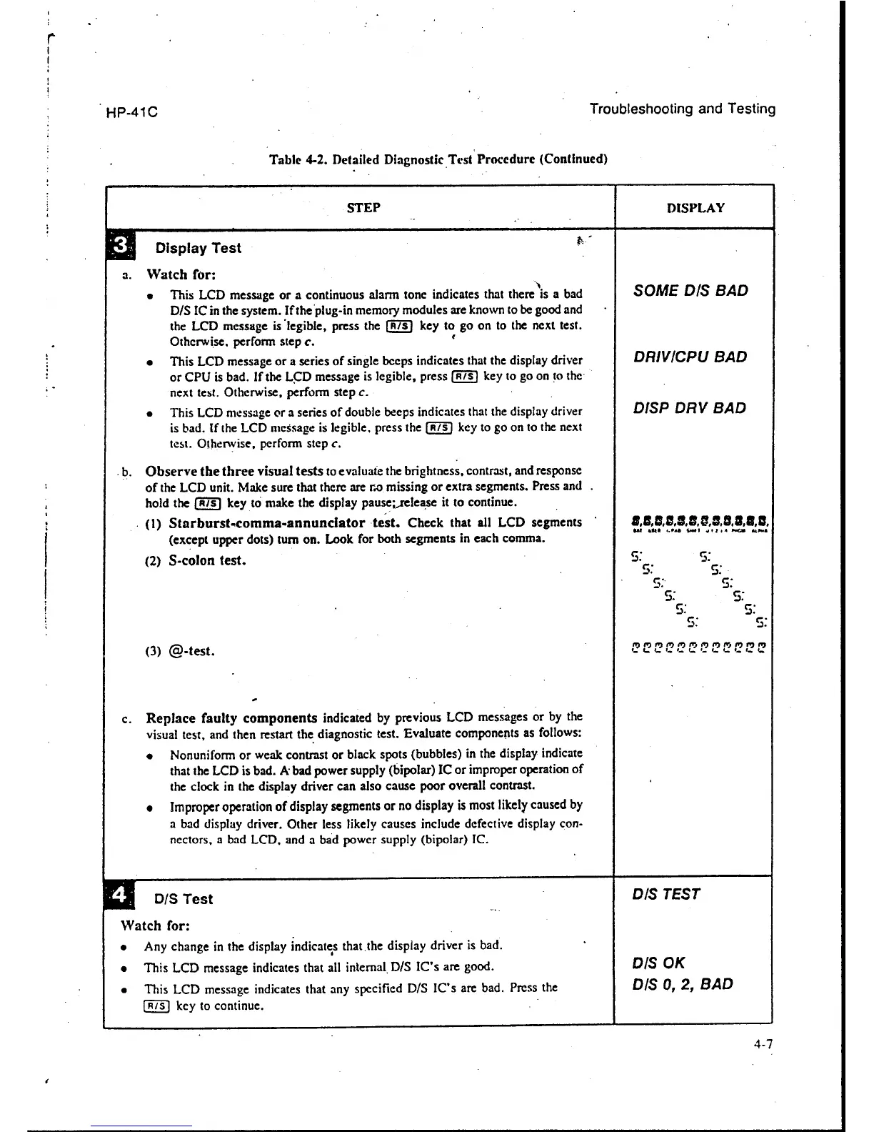 HP 41C - Display Test; D;S Test