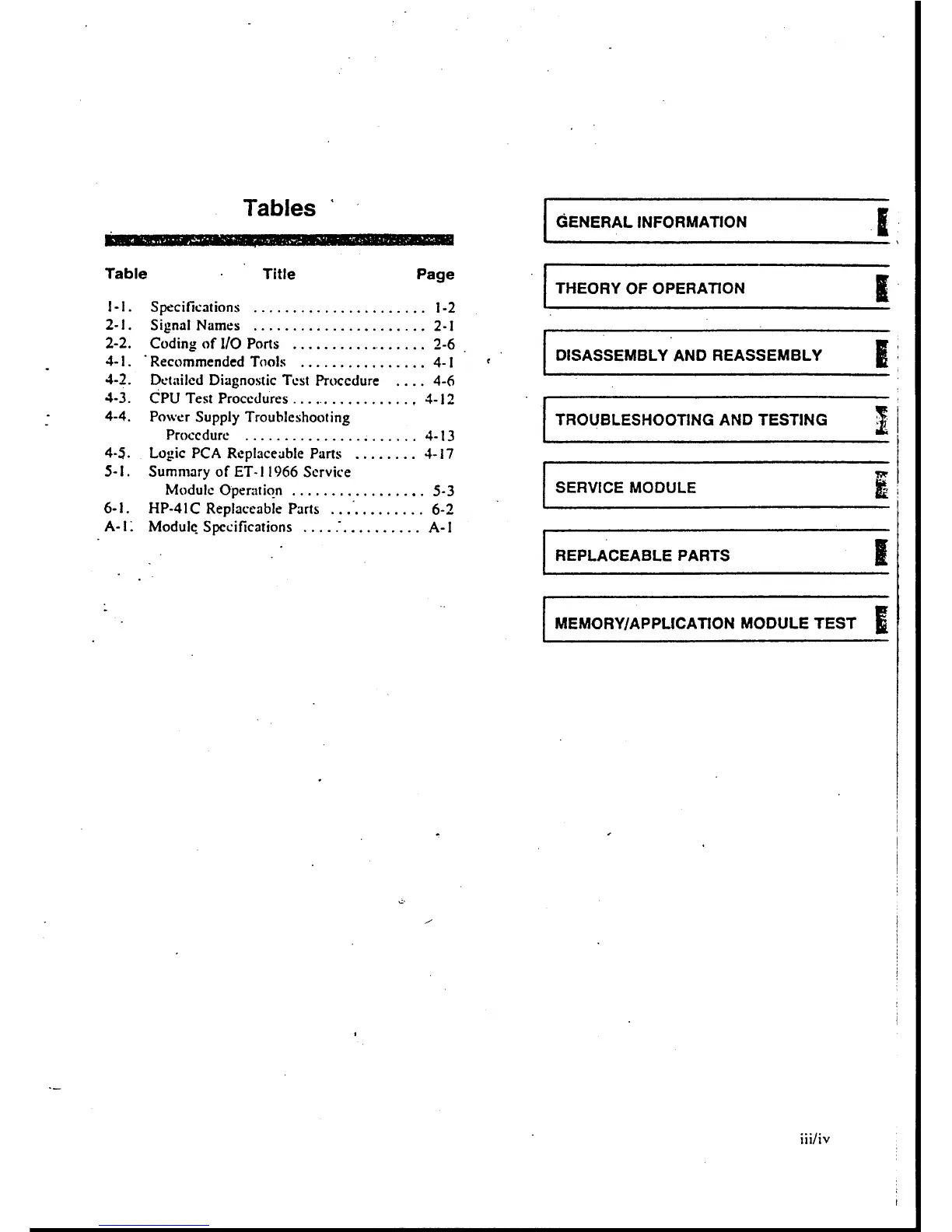 HP 41C - Tables List