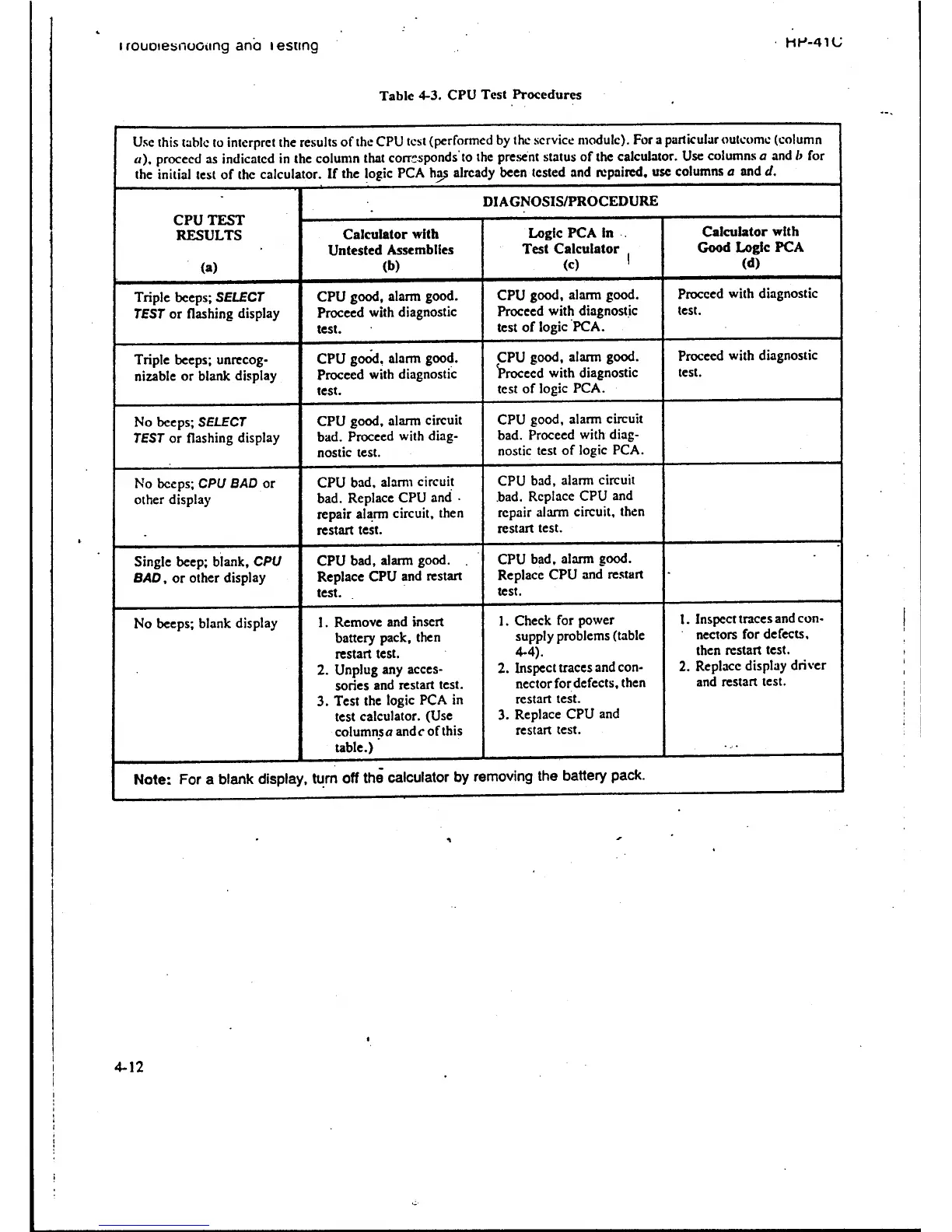 HP 41C - CPU Test Procedures