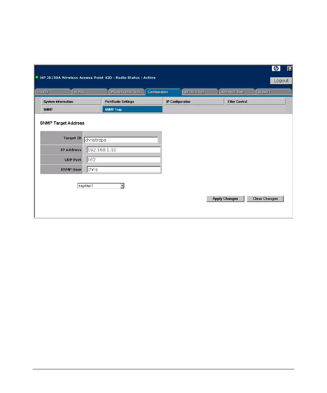 8. Click the [Apply Changes] button to return to the SNMP Trap window where