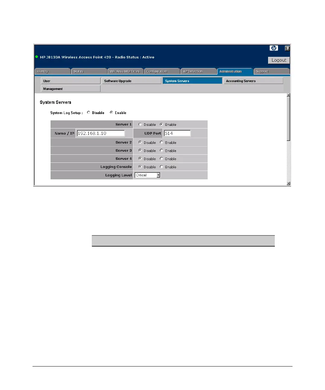 [no] logging host <1 | 2 | 3 | 4> <host_name | host_ip_address> page 8-29