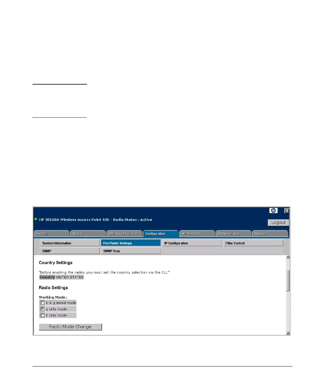 No t e If you are using the worldwide product, J8131A, before configuring radio