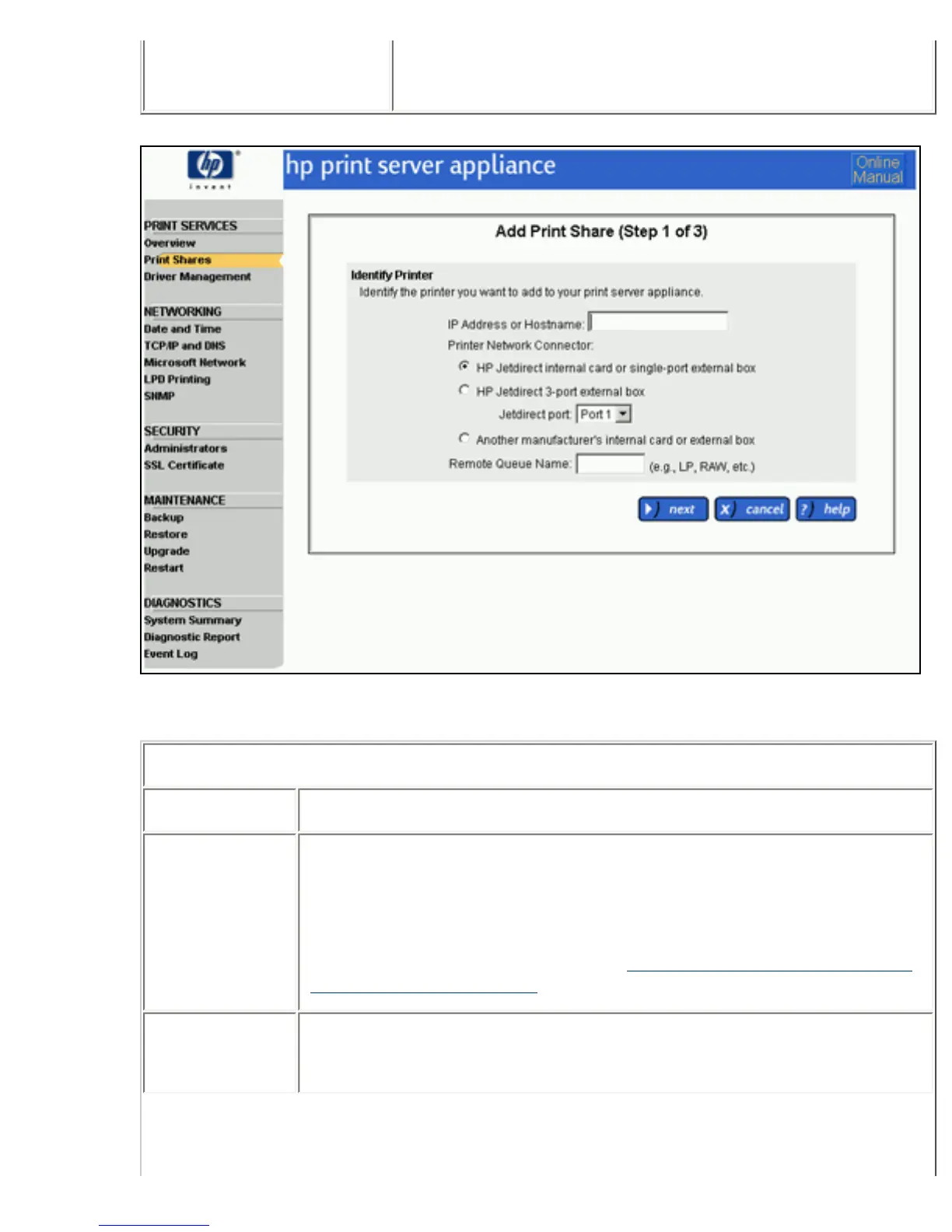 ❍ Add Print Share (Step 2 of 3): Type the print share name and description.