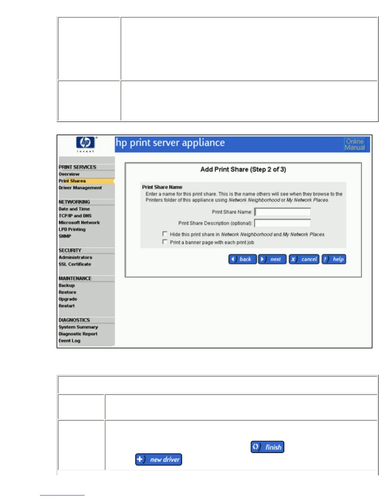 Displays all printer drivers currently installed on the PSA, and highlights the