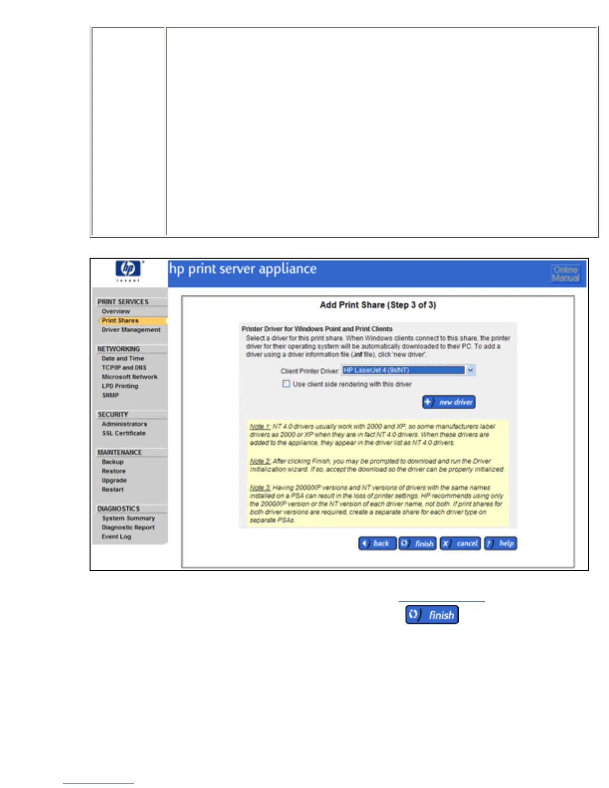 Note: NT clients will not be able to use this print share if a CSR driver is attached to this share.