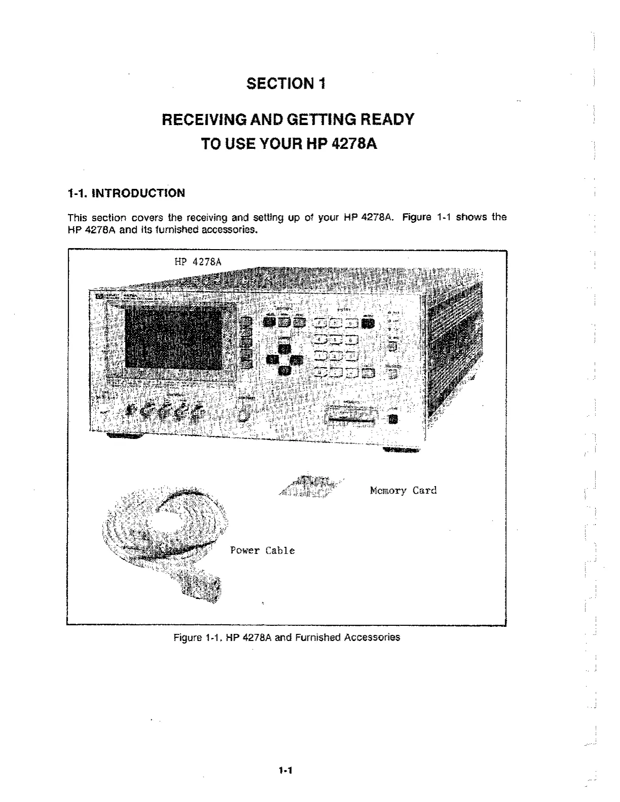 This section covers the receiving and setting up of your HP 4278A. Figure 1-1 shows the