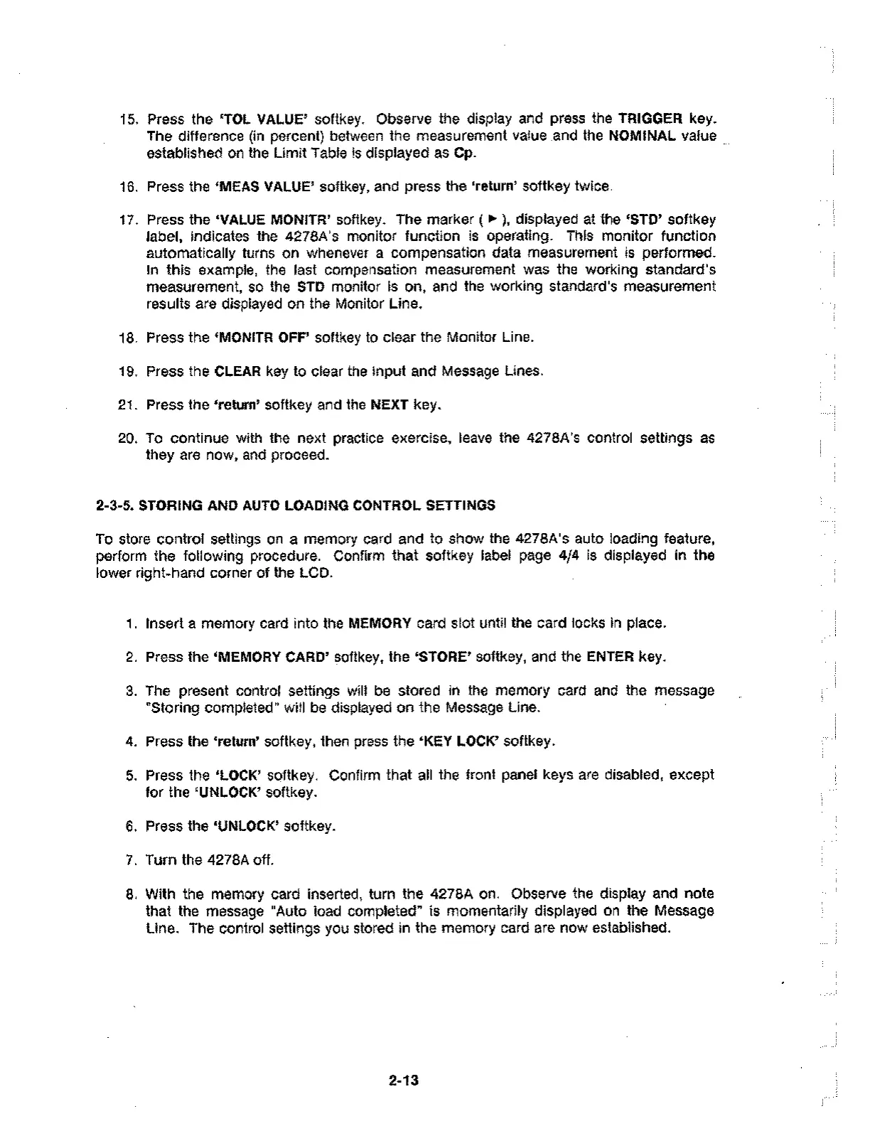 16. Press the `MEAS VALUE' softkey, and press the 'return' softkey twice.
