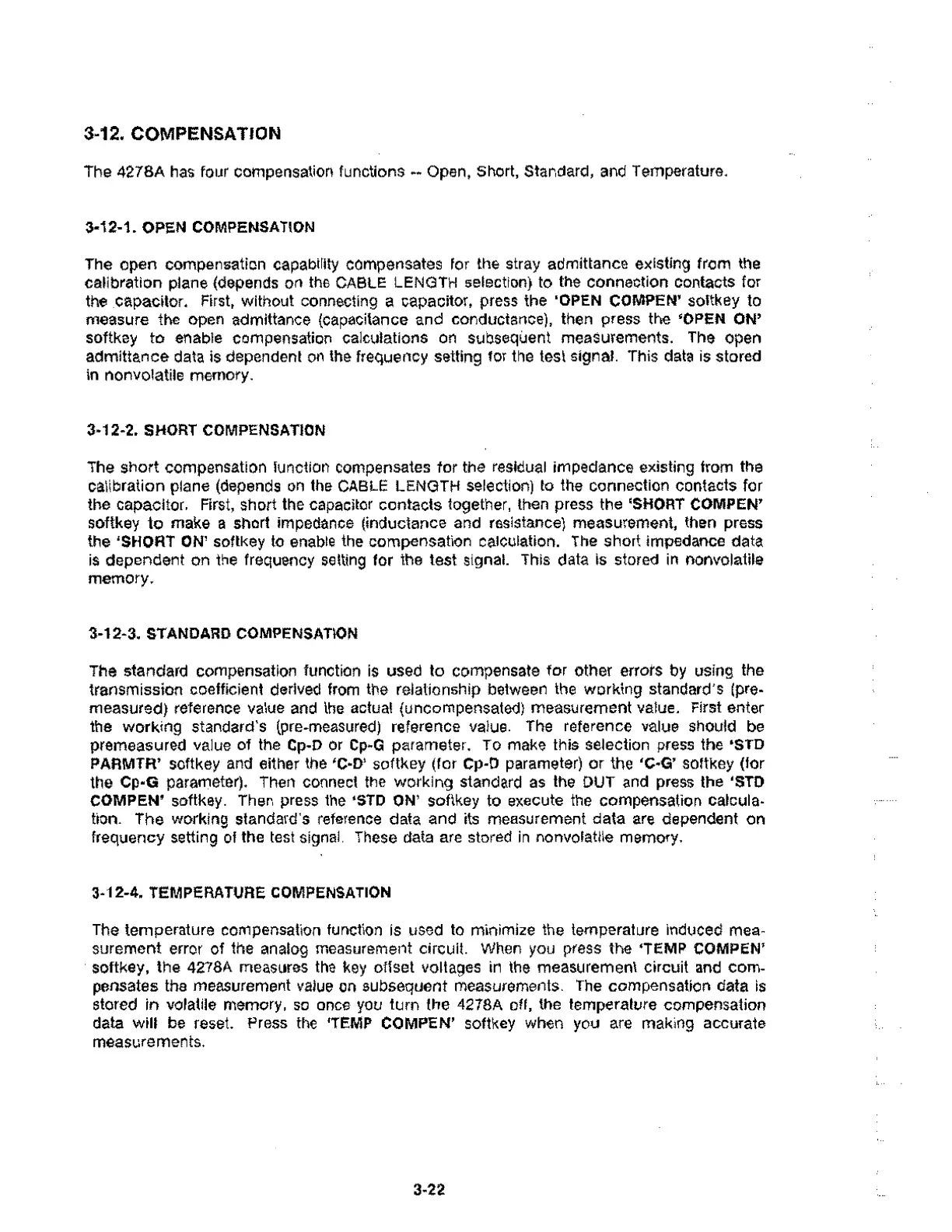The 4278A has four compensation functions -- Open, Short, Standard, and Temperature.