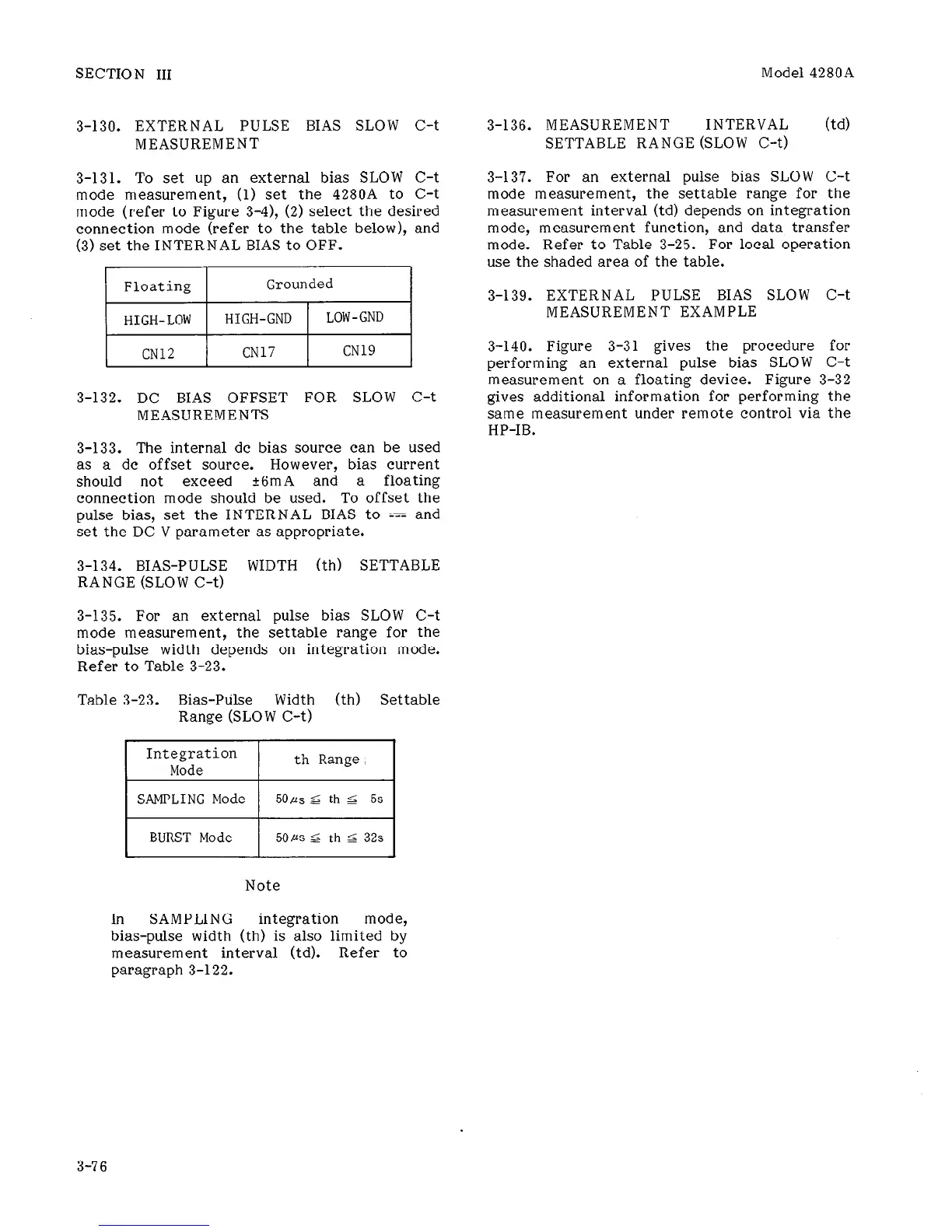 HP 4280A - External Pulse Bias (Slow C-t); Connection Modes and DC Bias Offset for Slow C-t