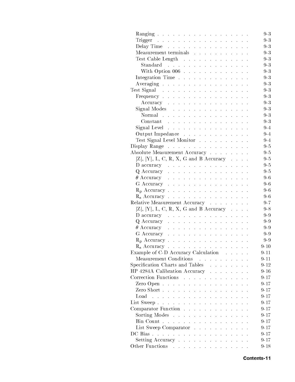 HP 4284A Calibration Accuracy . . . . . . . . 9-16