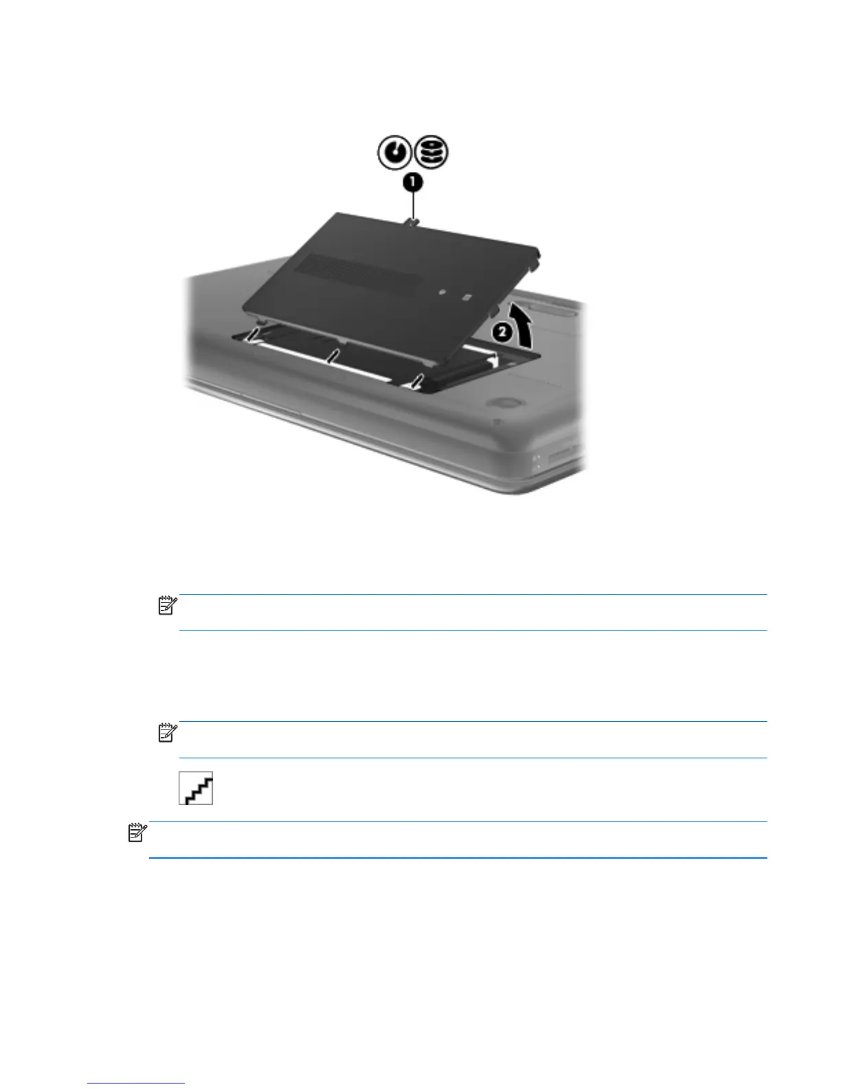 Lift the rear edge of the memory module/wireless module compartment cover (2) up and forward