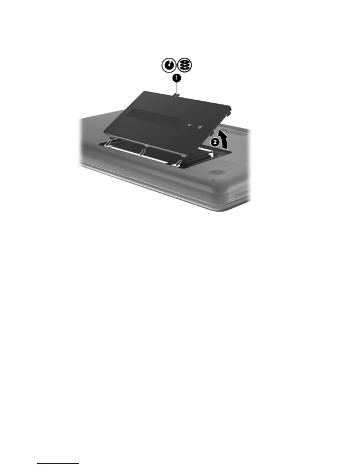 Lift the rear edge of the hard drive compartment cover (2) up and forward until it rests at