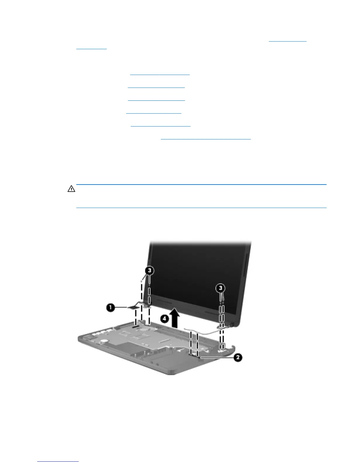 CAUTION: Support the display assembly when removing the following screws. Failure to