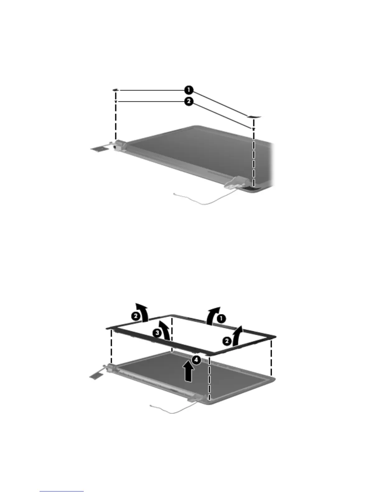 the bottom edge (3) of the display bezel until the bezel disengages from