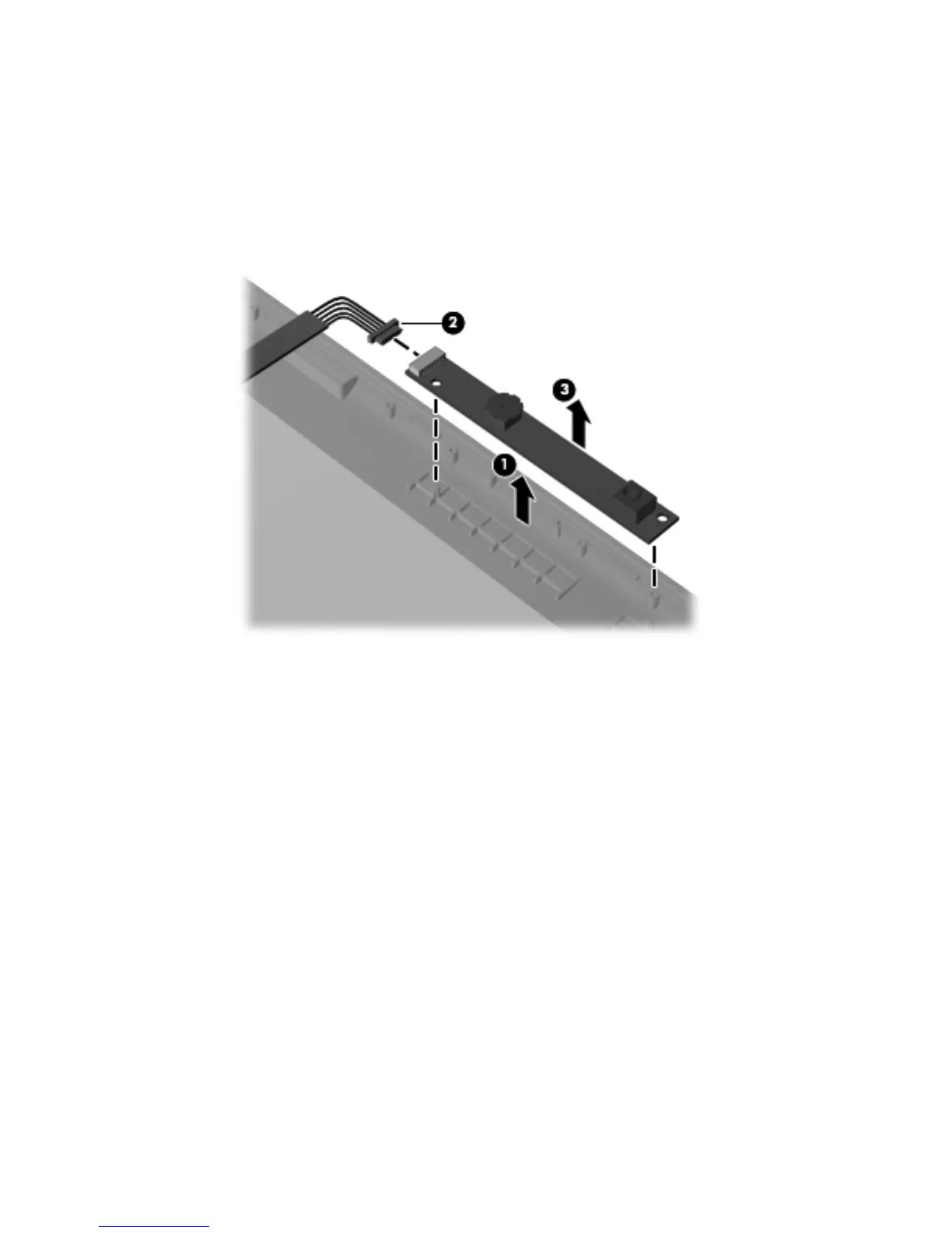 c. Remove the webcam/microphone module (3). The webcam/microphone module is available