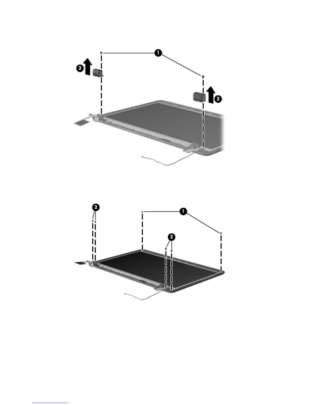 Remove the hinge covers (2). The hinge covers are available using spare part number