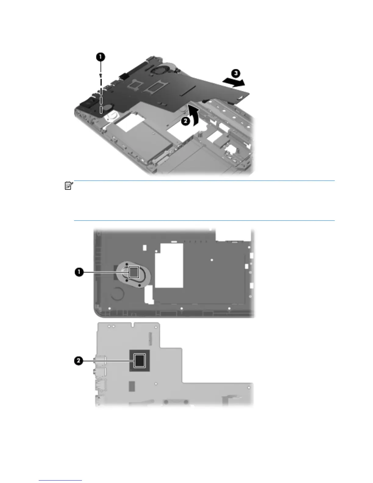 the system board. The thermal material must be thoroughly cleaned from the surfaces of the system