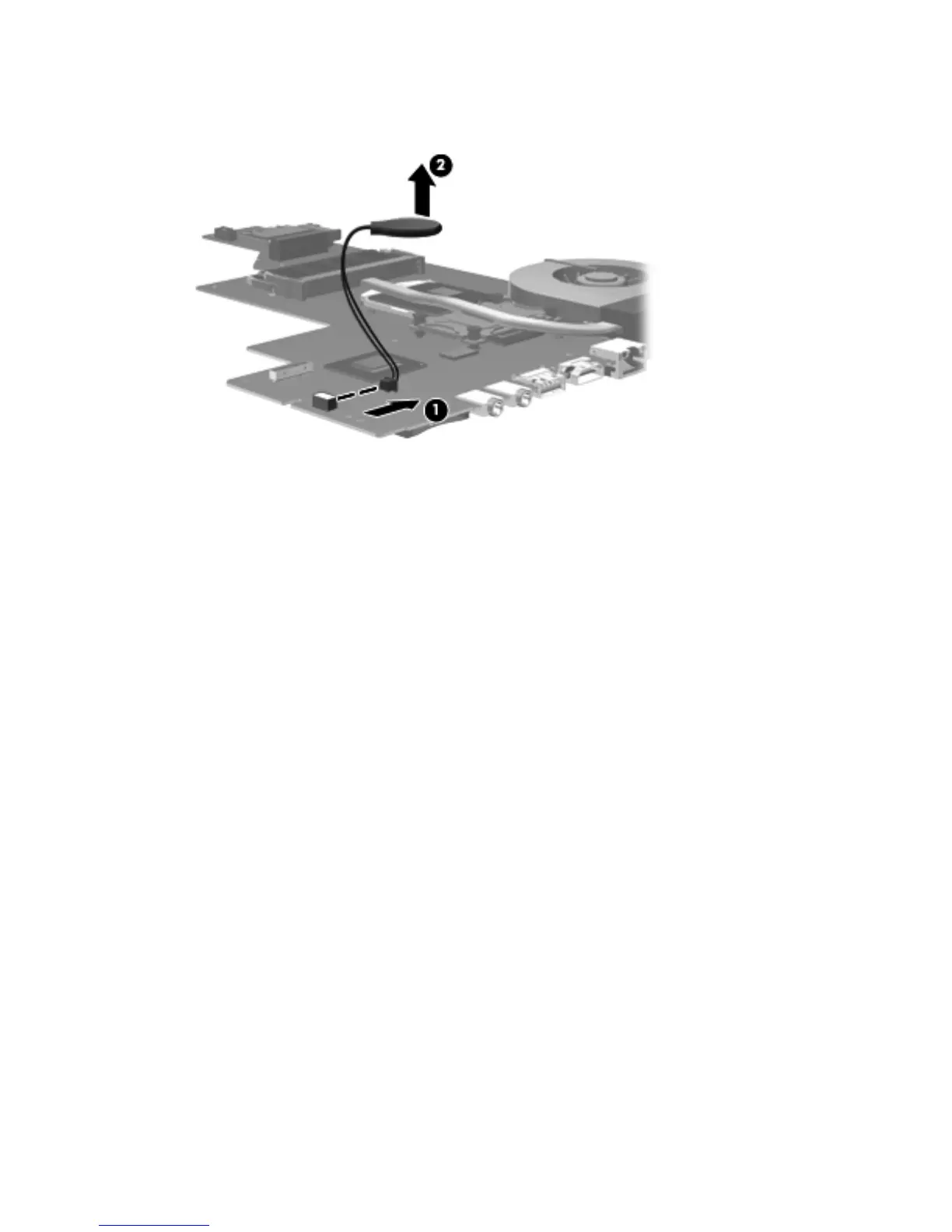Detach the RTC battery (2) from the system board. (The RTC battery is attached to the system