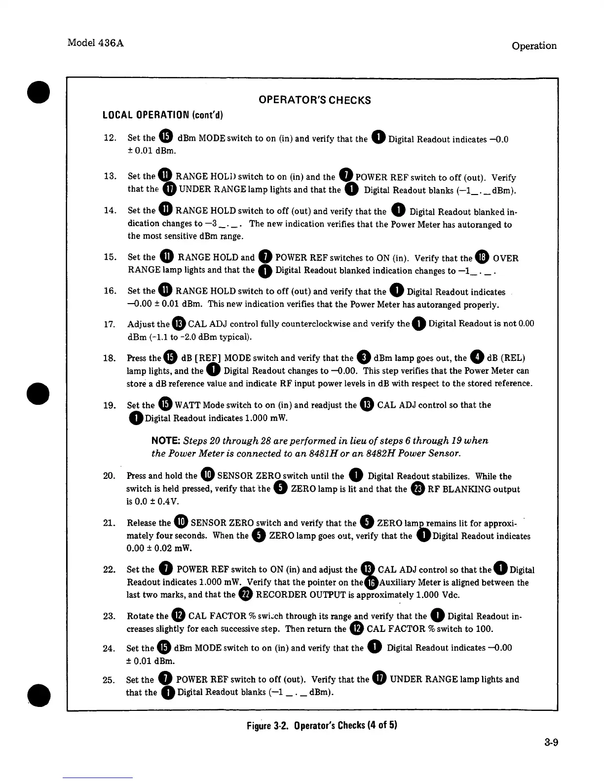 SENSOR ZERO switch until the 0 Digital Readout stabilizes.