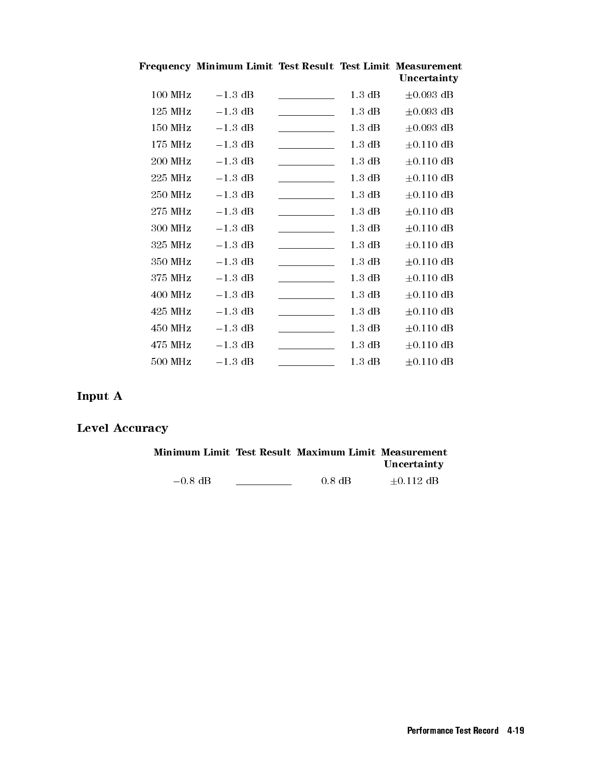 Frequency Minimum Limit Test Result Test Limit Measurement