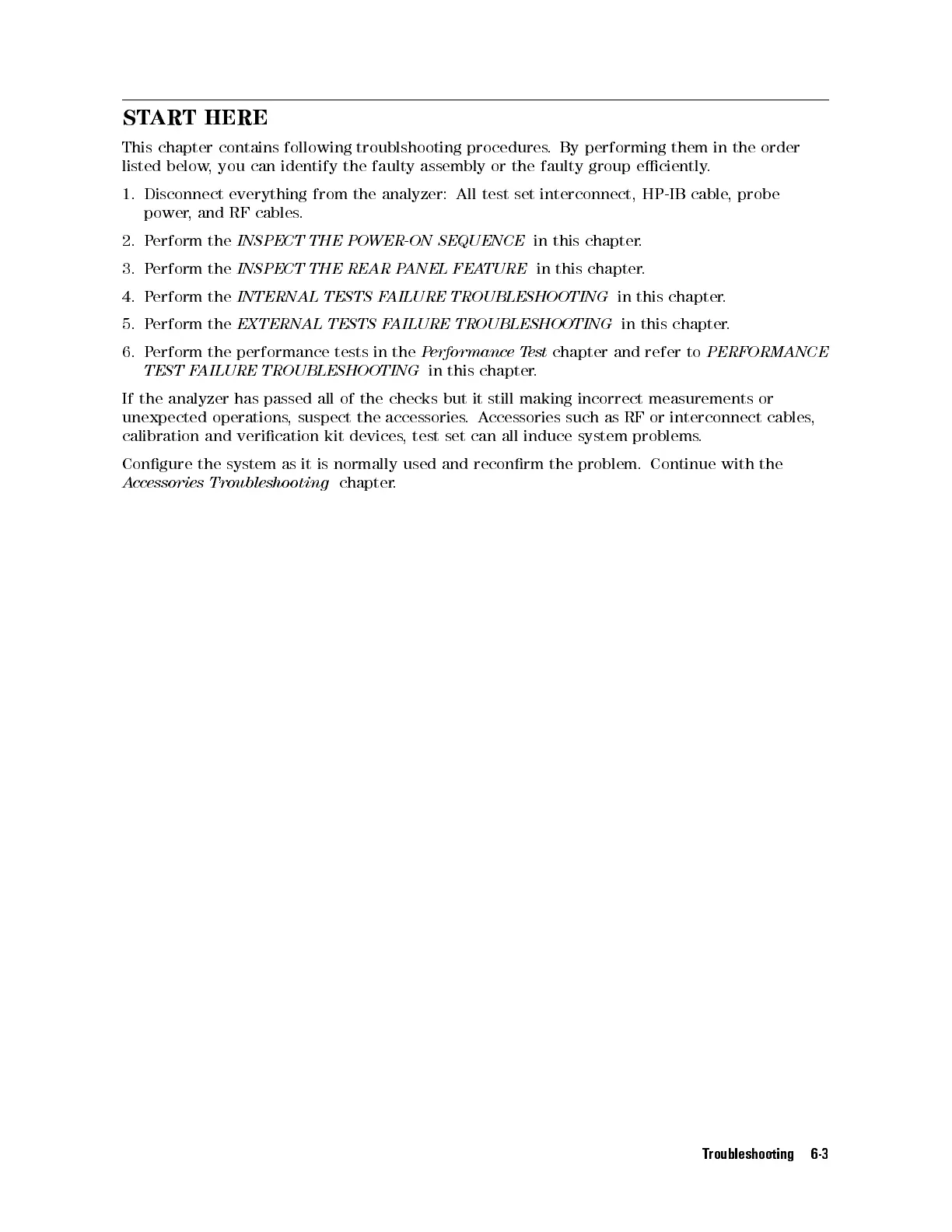 1. Disconnect everything from the analyzer: All test set interconnect, HP-IB cable, probe