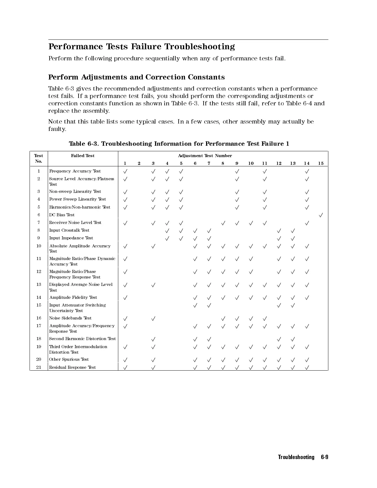 Table 6-3. Troubleshooting Information for Performance Test Failure 1