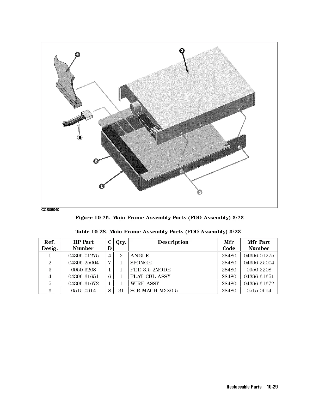 Table 10-28. Main Frame Assembly Parts (FDD Assembly) 3/23
