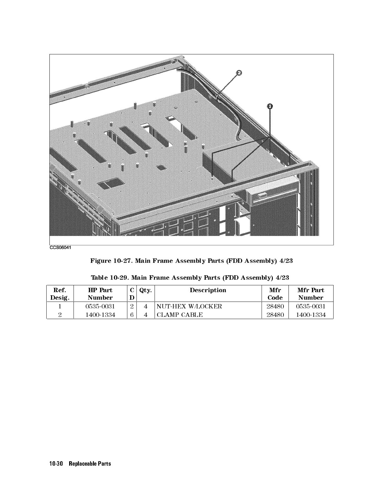 Table 10-29. Main Frame Assembly Parts (FDD Assembly) 4/23