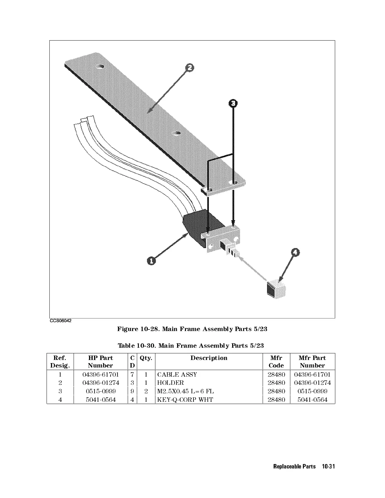 Table 10-30. Main Frame Assembly Parts 5/23