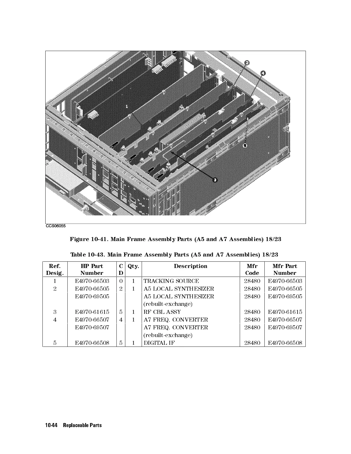 Table 10-43. Main Frame Assembly Parts (A5 and A7 Assemblies) 18/23