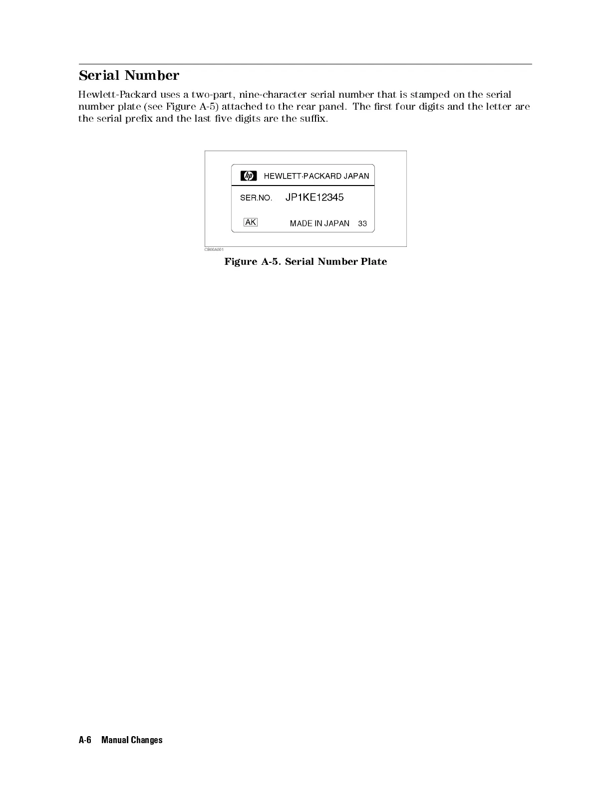 number plate (see Figure A-5) attached to the rear panel. The rst four digits and the letter are