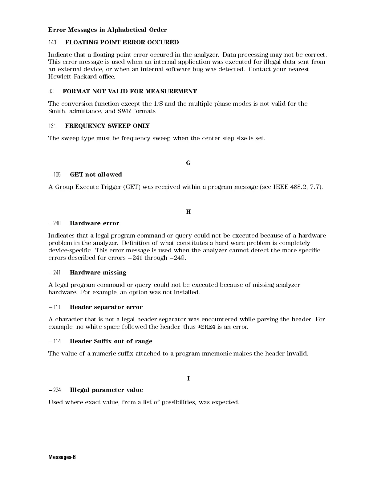 Indicate that a oating point error occured in the analyzer. Data processing may not be correct.