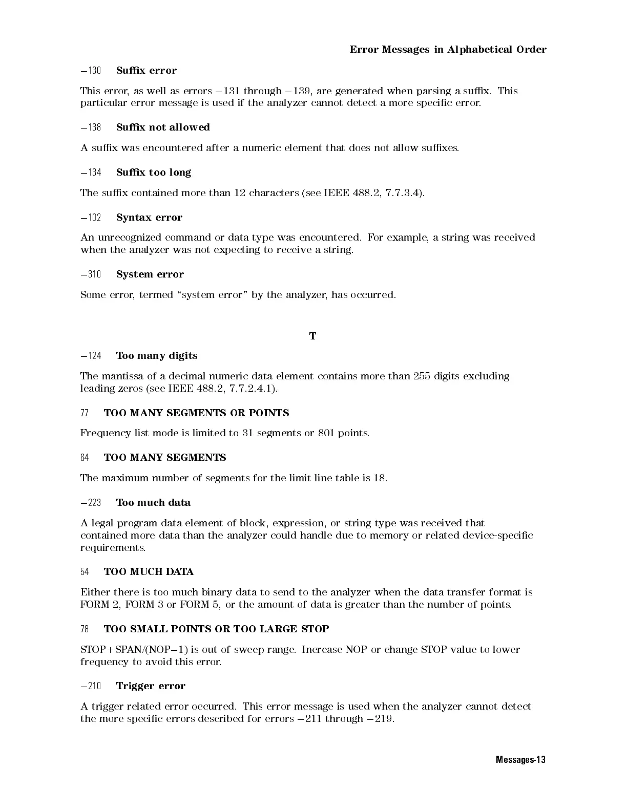 Error Messages in Alphabetical Order