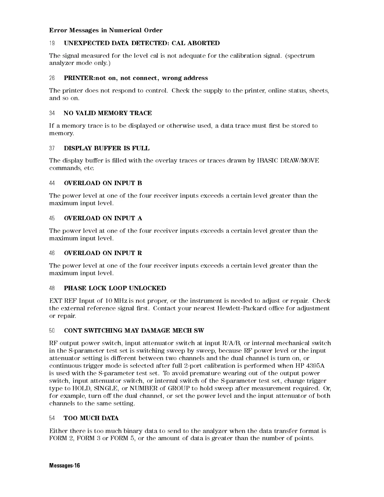 Error Messages in Numerical Order