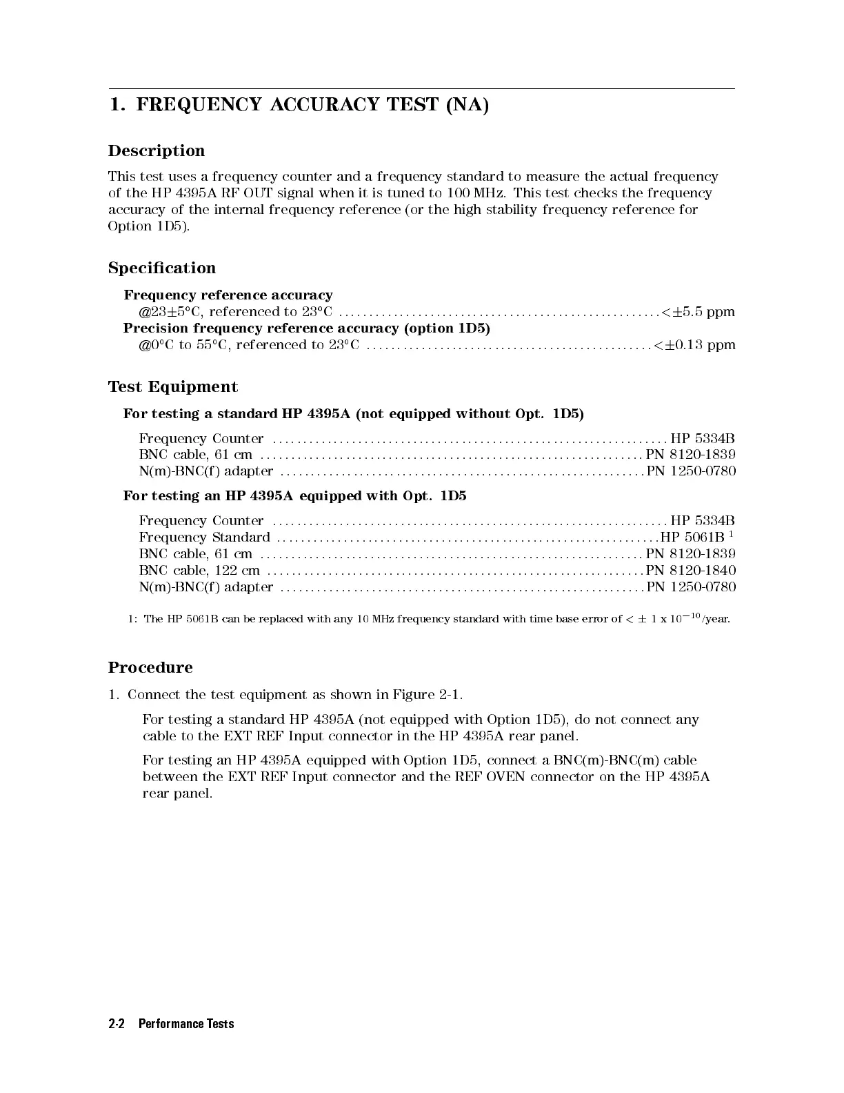 For testing an HP 4395A equipped with Option 1D5, connect a BNC(m)-BNC(m) cable