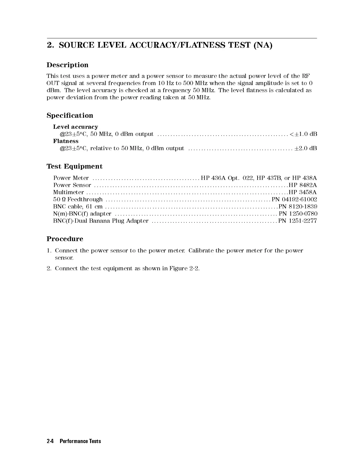 2. SOURCE LEVEL ACCURACY/FLATNESS TEST (NA)