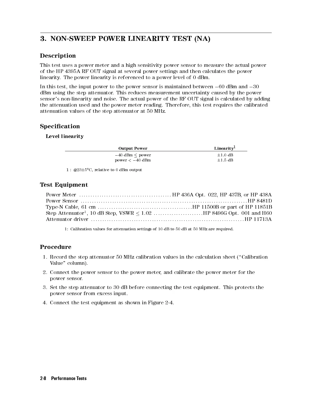 3. NON-SWEEP POWER LINEARITY TEST (NA)