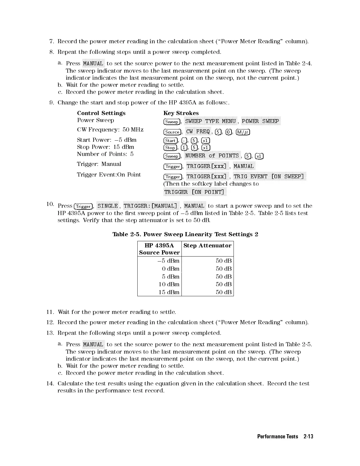 to set the source power to the next measurement point listed in Table 2-5.