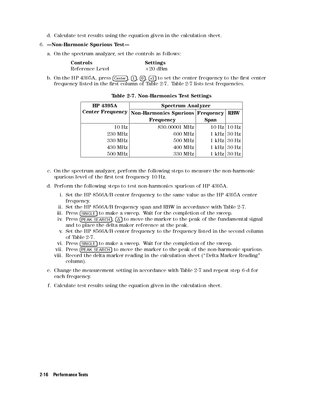 frequency listed in the rst column of Table 2-7 . Table 2-7 lists test frequencies.