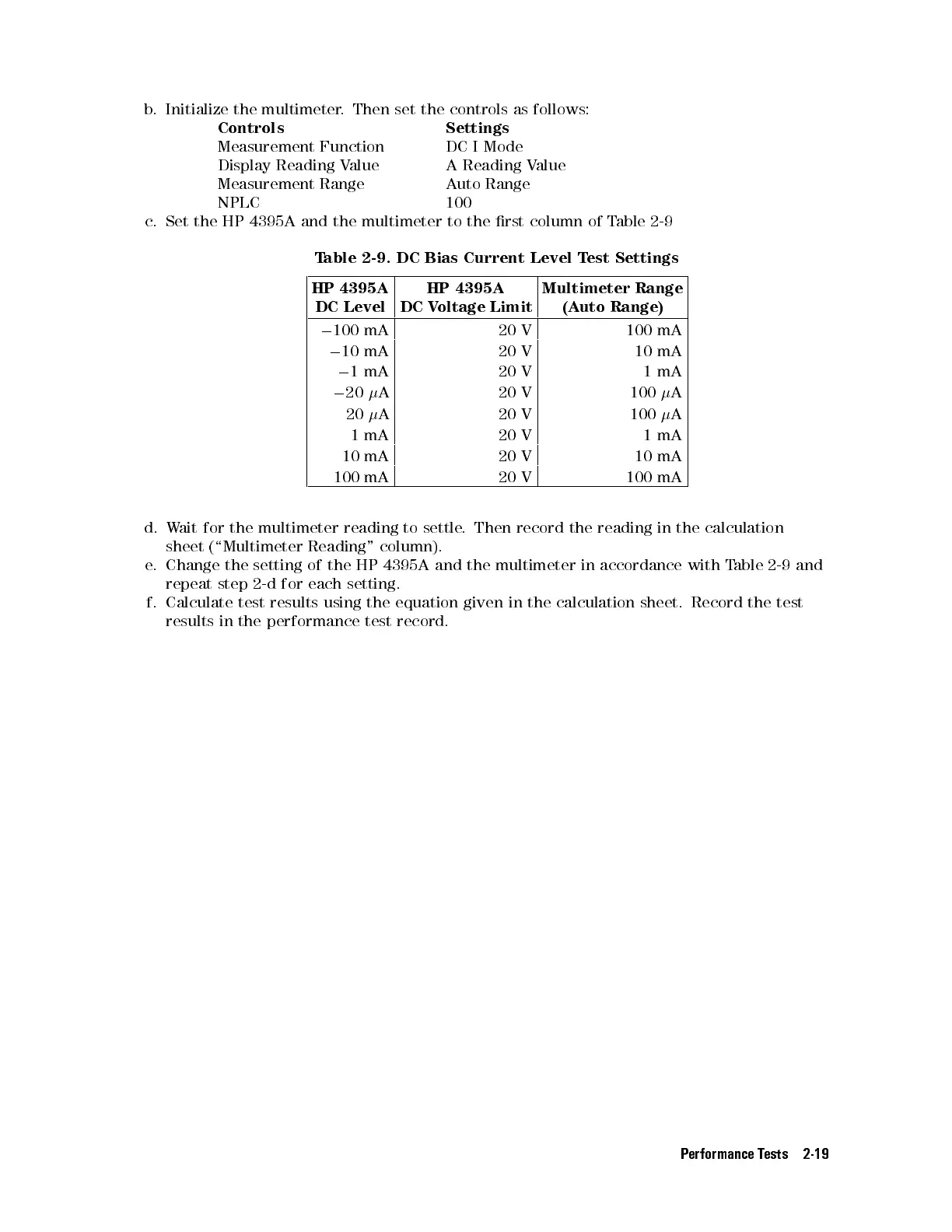 c. Set the HP 4395A and the multimeter to the rst column of Table 2-9