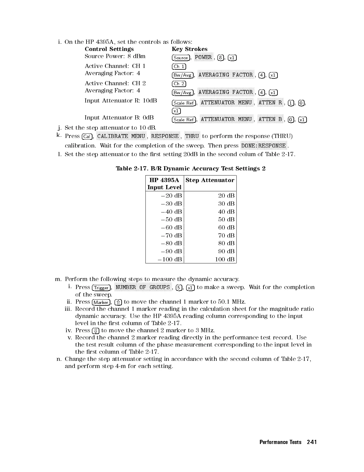 l. Set the step attenuator to the rst setting 20dB in the second colum of Table 2-17.