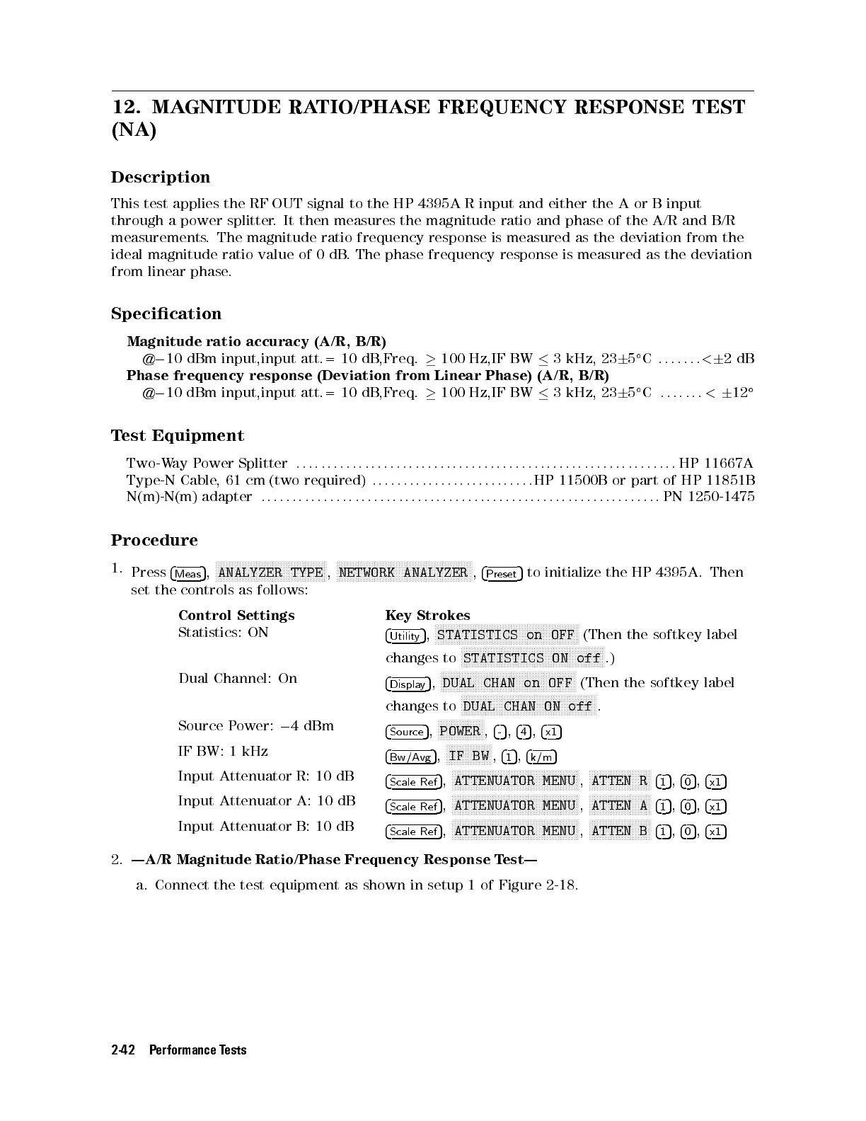 This test applies the RF OUT signal to the HP 4395A R input and either the A or B input