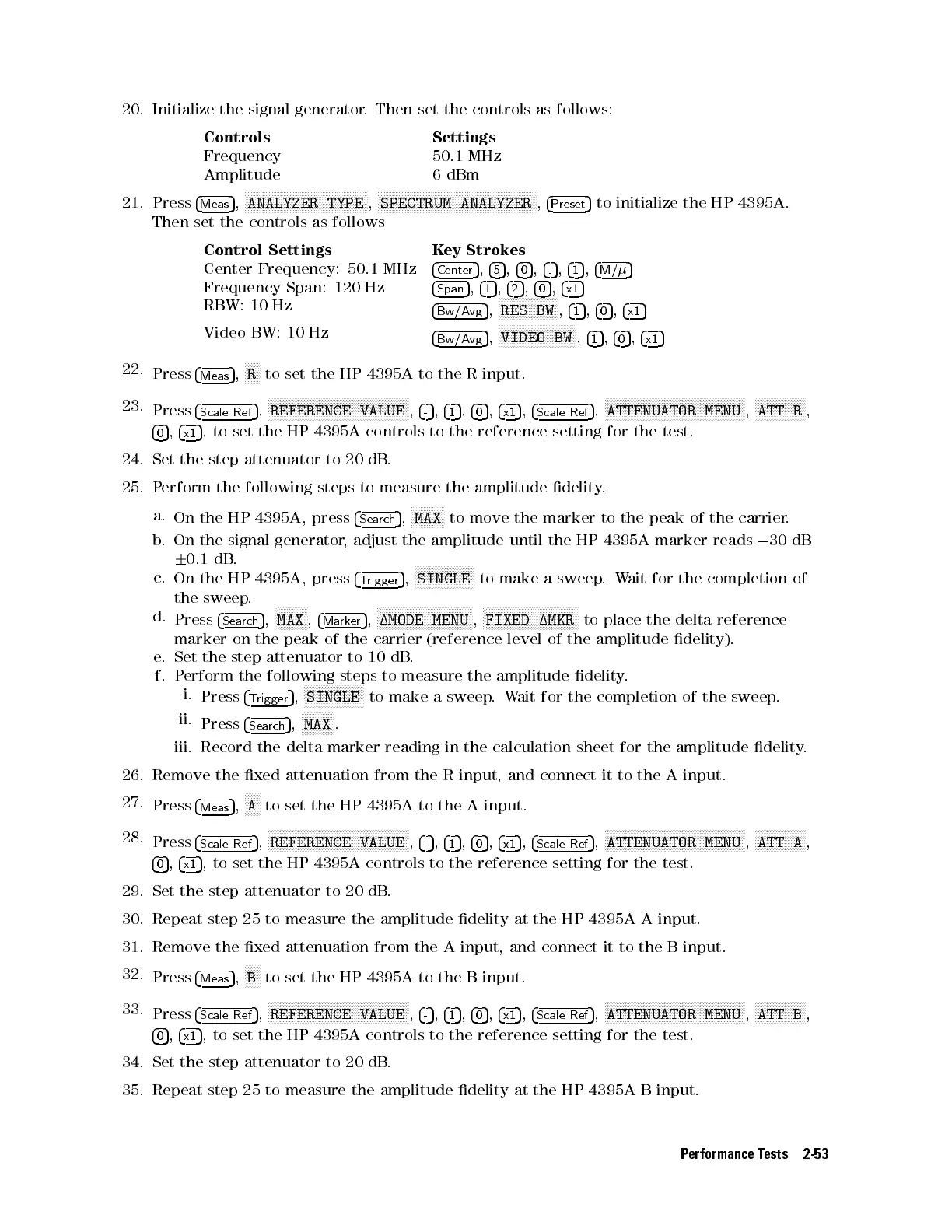 30. Repeat step 25 to measure the amplitude delity at the HP 4395A A input.