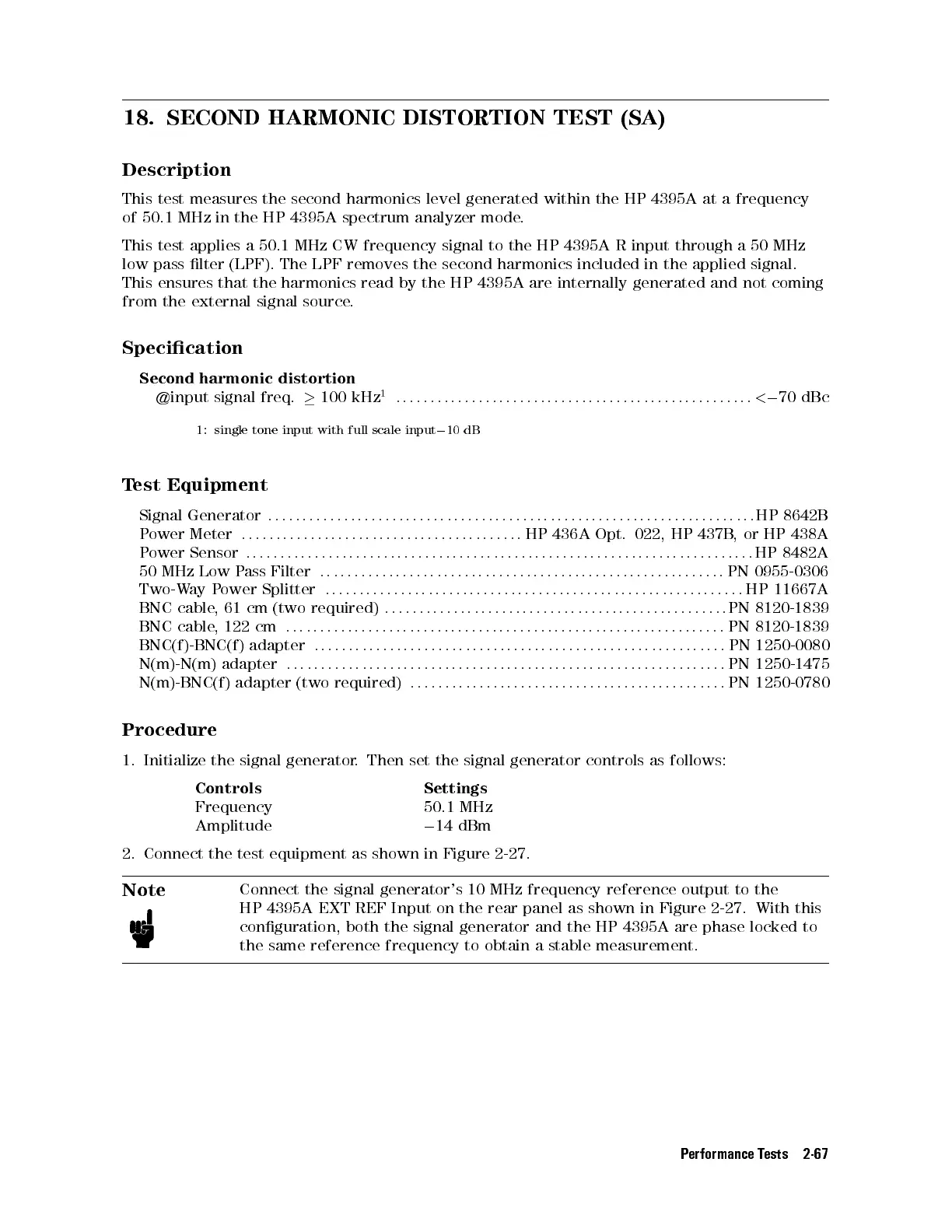 This test measures the second harmonics level generated within the HP 4395A at a frequency