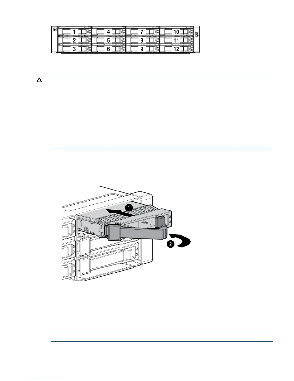 1. Insert the disk drive into the drive bay (1, Figure 13 (page 17)) until it clicks, locking the drive.