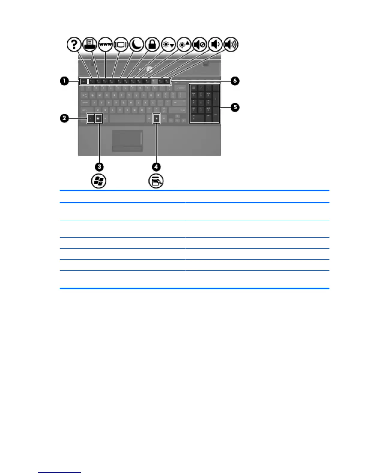 (4) Windows applications key Displays a shortcut menu for items beneath the pointer.