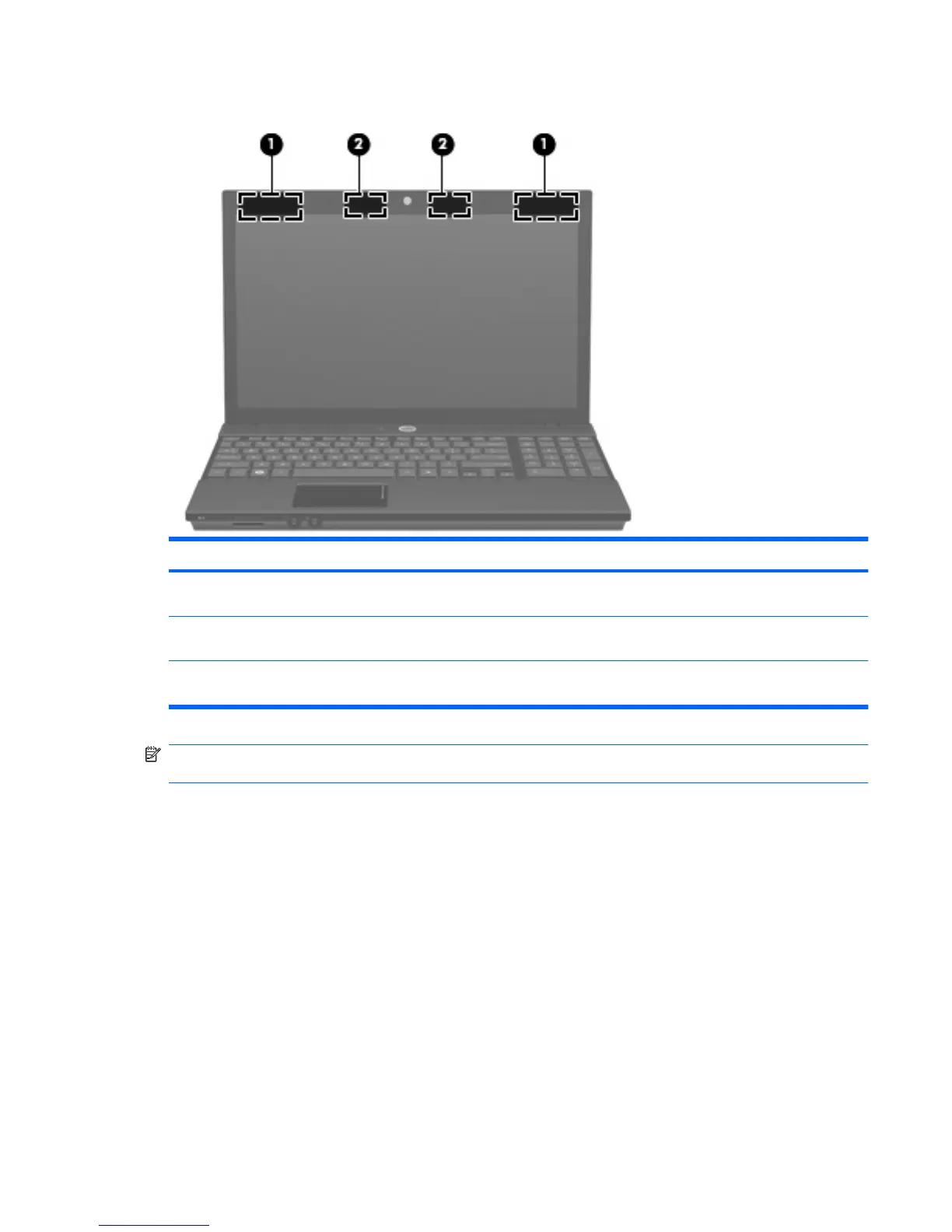 (1) WWAN antennas (2)* (select models only) Send and receive wireless signals to communicate with wireless